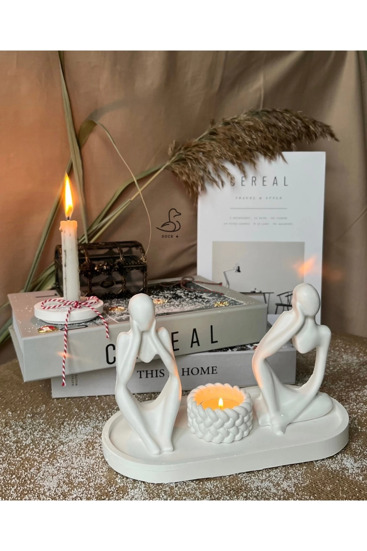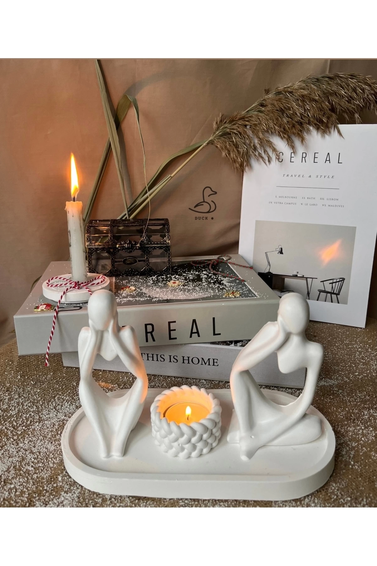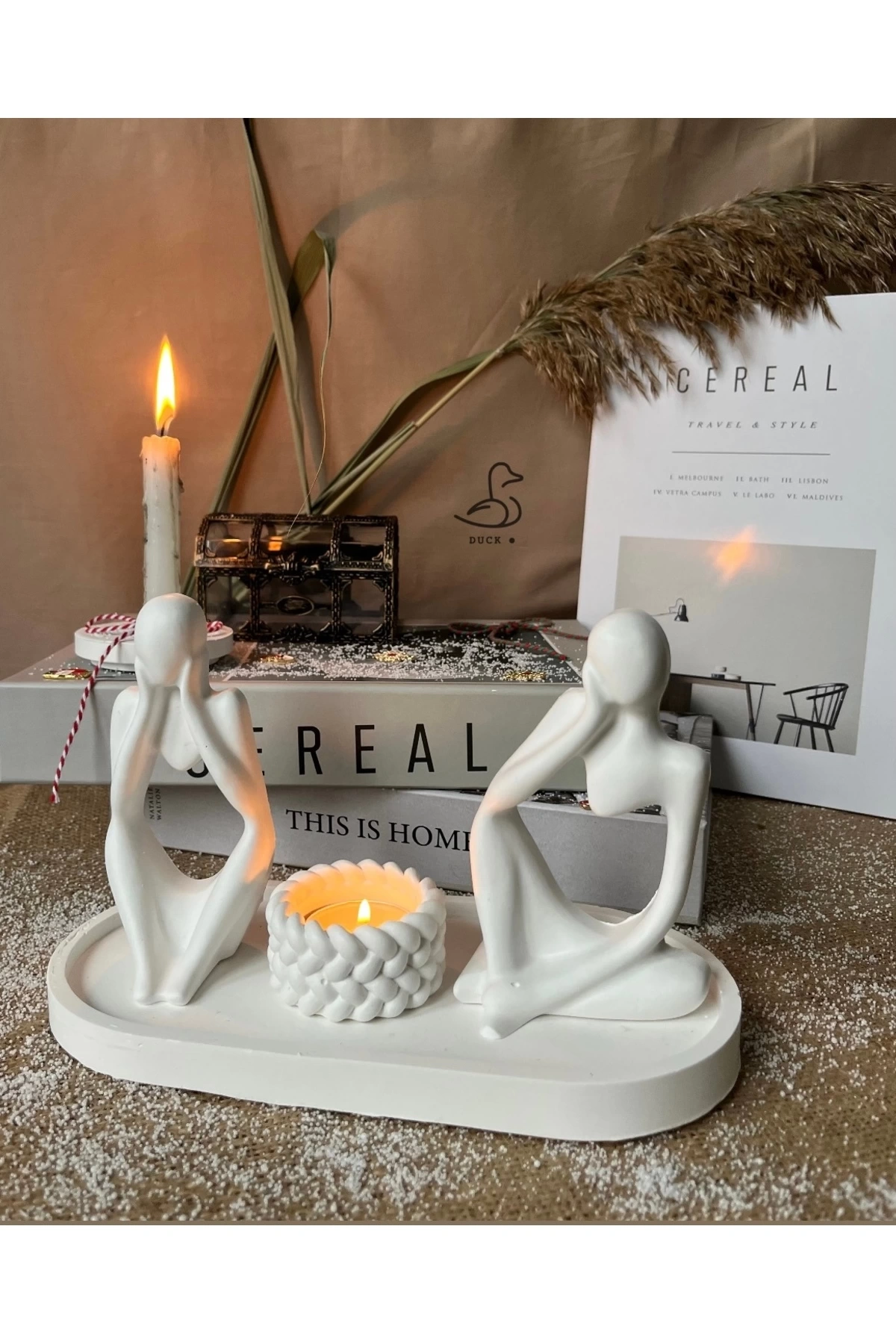 - Soyut sanatın özgün çizgilerini evinizin dekorasyonuna taşıyan 3D soyut düşünür 2’li insan figürü, modern ve şık bir atmosfer yaratır.; - bir adet mumluk ile tamamlanan bu set, hem estetik hem de fonksiyonel bir kullanım sunar; mumlarınızı zarifçe sergilemenizi sağlar.; - Taş tozu materyali sayesinde dayanıklılığı ve uzun ömürlülüğü ön planda tutulurken, doğal dokusuyla mekanınıza sıcaklık katar.; - Türkiye'de üretilmiş olmasıyla yerel üretim kültürünü destekler ve kalite standartlarına uygun olarak tasarlanmıştır.; - 7 cm genişliğindeki boyutu ile kolayca yerleştirilebilir ve farklı alanlarda estetik bir denge oluşturur.; - Beyaz renkteki web rengi, diğer mobilya ve aksesuarlarınızla kolayca uyum sağlayarak mekanınızda harmonik bir görünüm oluşturur.