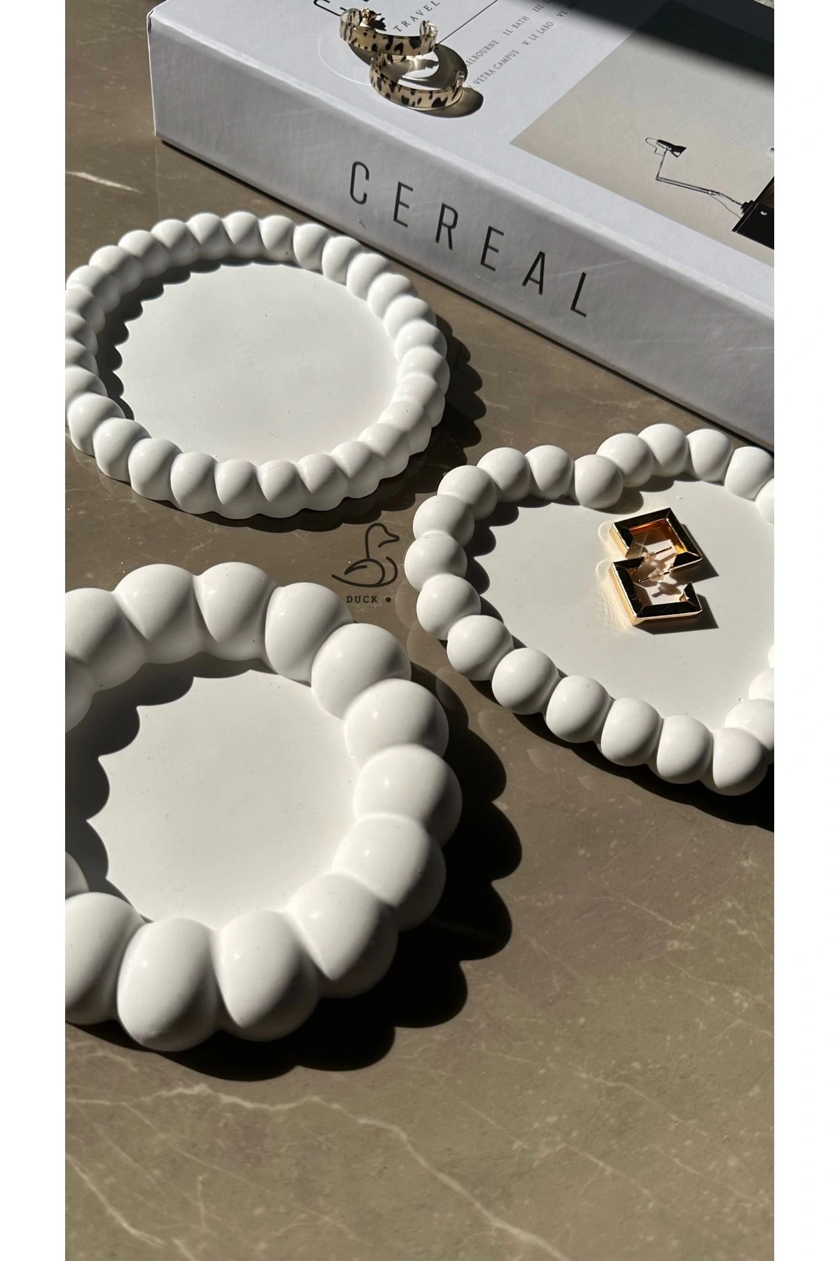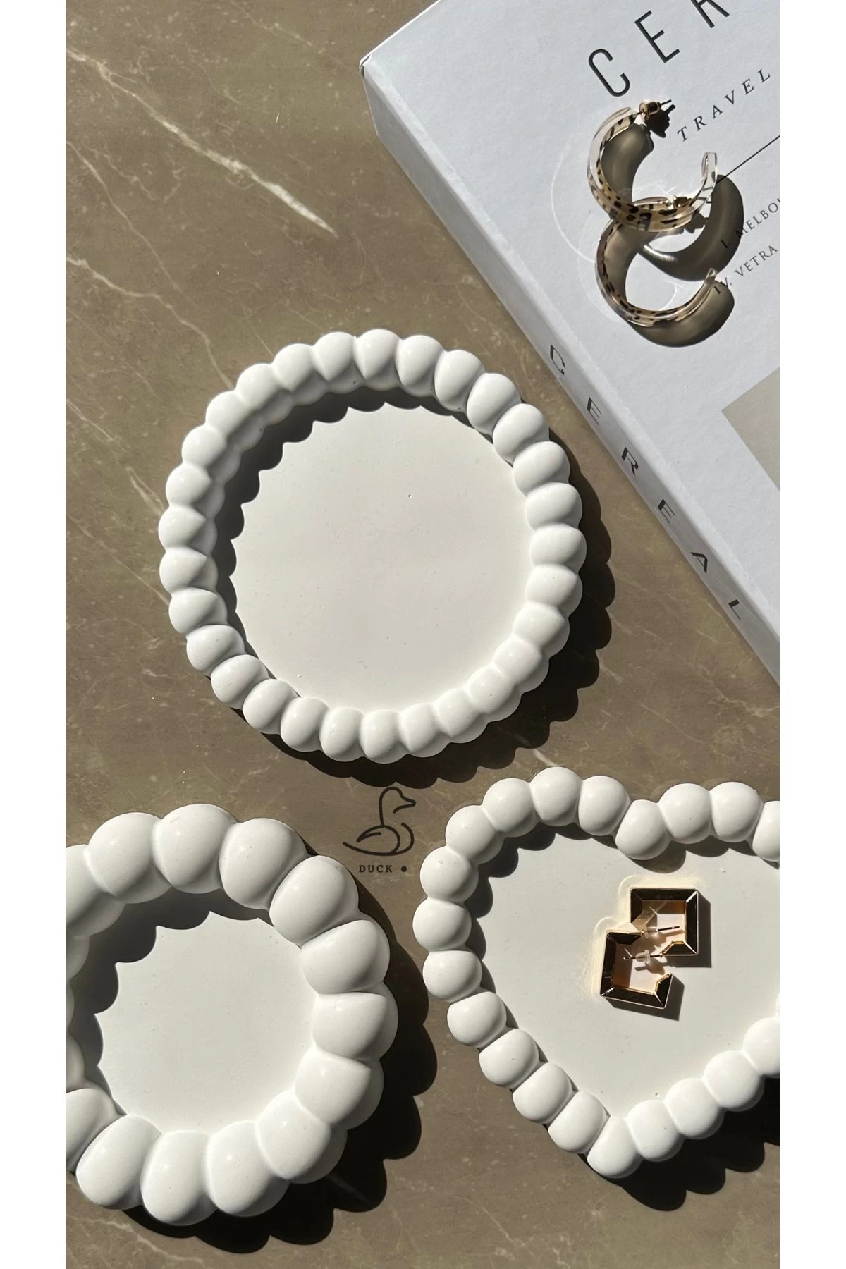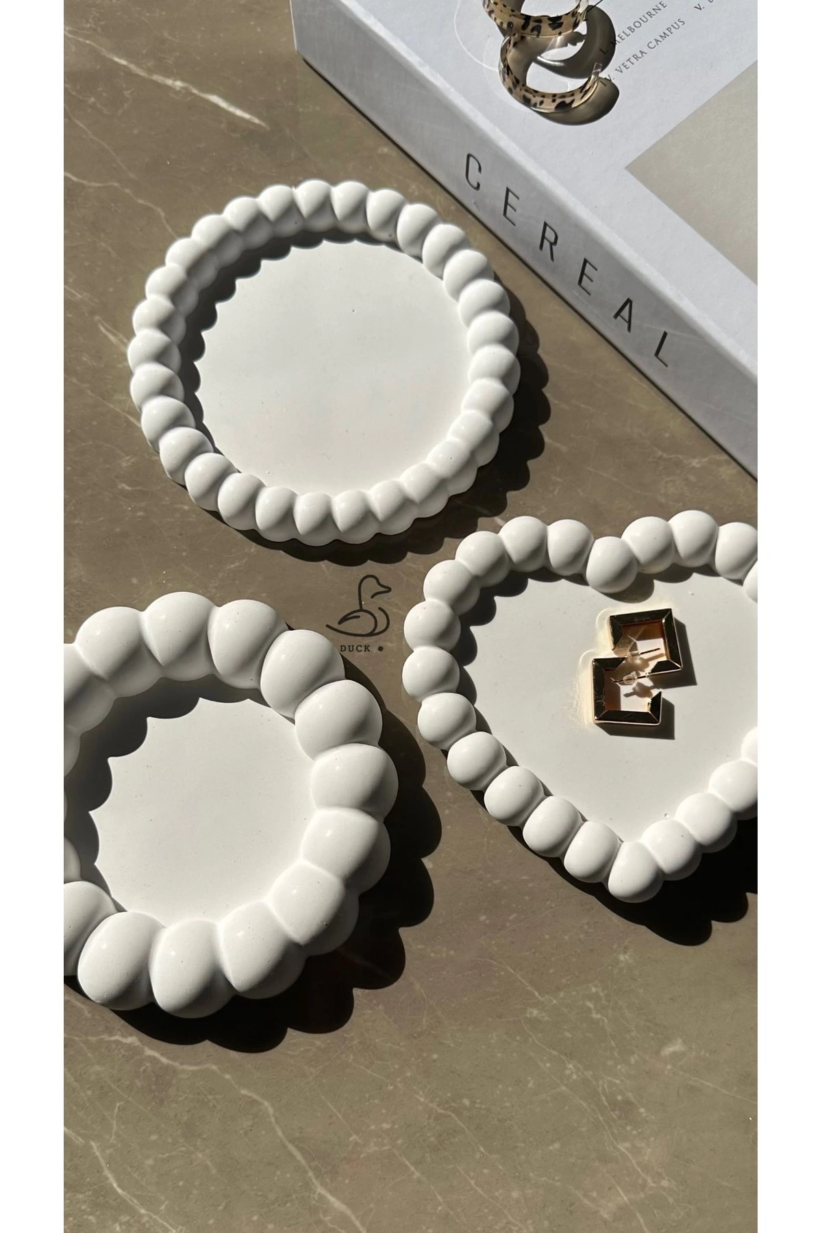 - Üç adet beton tabaktan oluşan set, modern dekorasyonun vazgeçilmez parçalarını sunar.; - Her bir tabağın yuvarlak şekli ile minimalist ve şık bir görünüm sağlar.; - Beyaz renk seçeneğiyle her türlü masa düzenine kolayca uyum sağlar.; - 10 x 10 cm boyutlarındaki bu tabaklar, hem küçük sofra düzenlemelerinde hem de sunumlarda idealdir.; - Beton materyali sayesinde dayanıklılık ve uzun ömürlü kullanım vaat eder.
