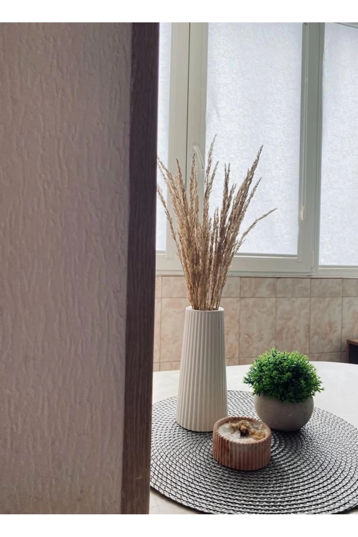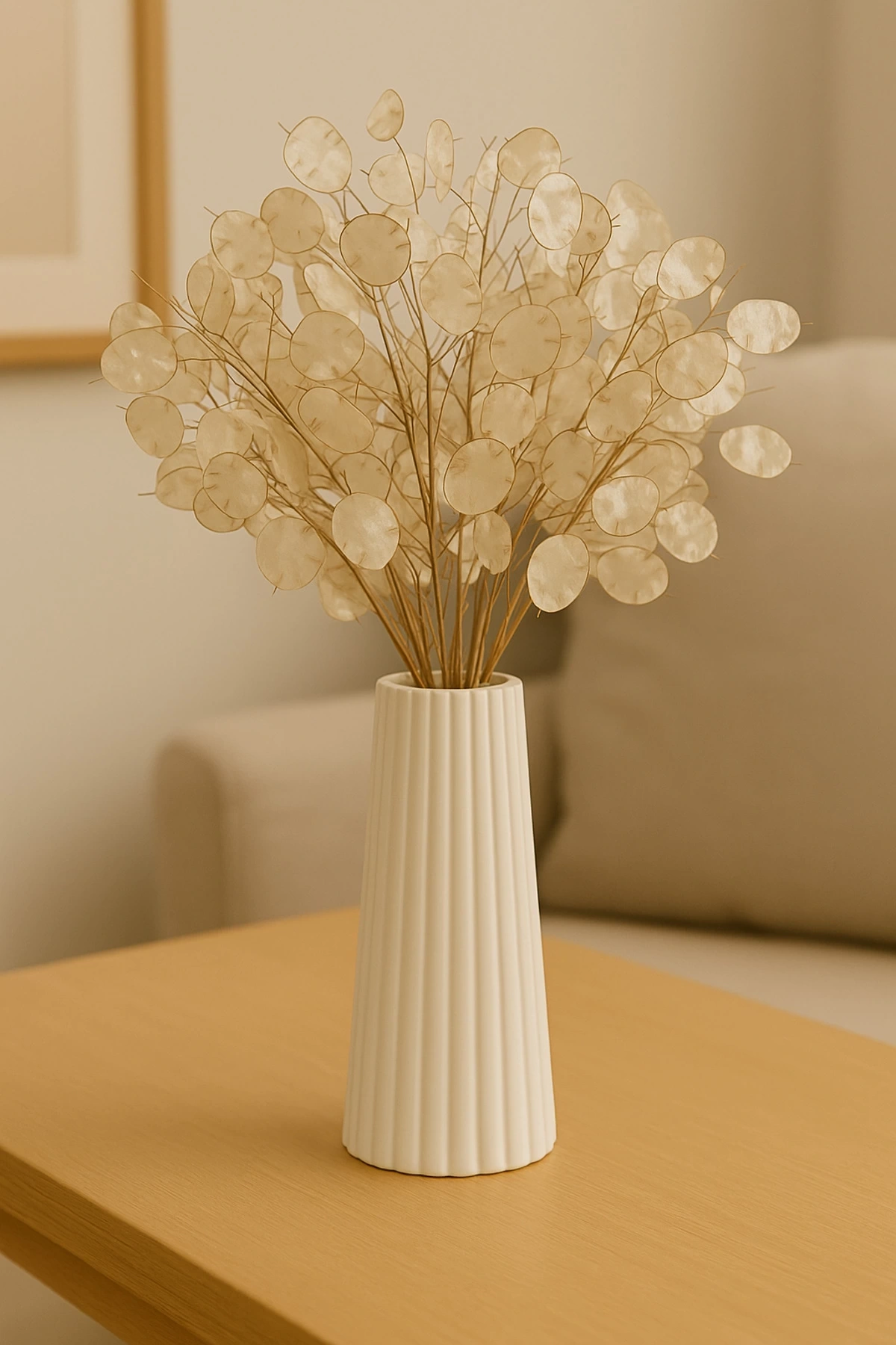 Beyaz Çizgili Büyük Boy Vazo – İskandinav Stil