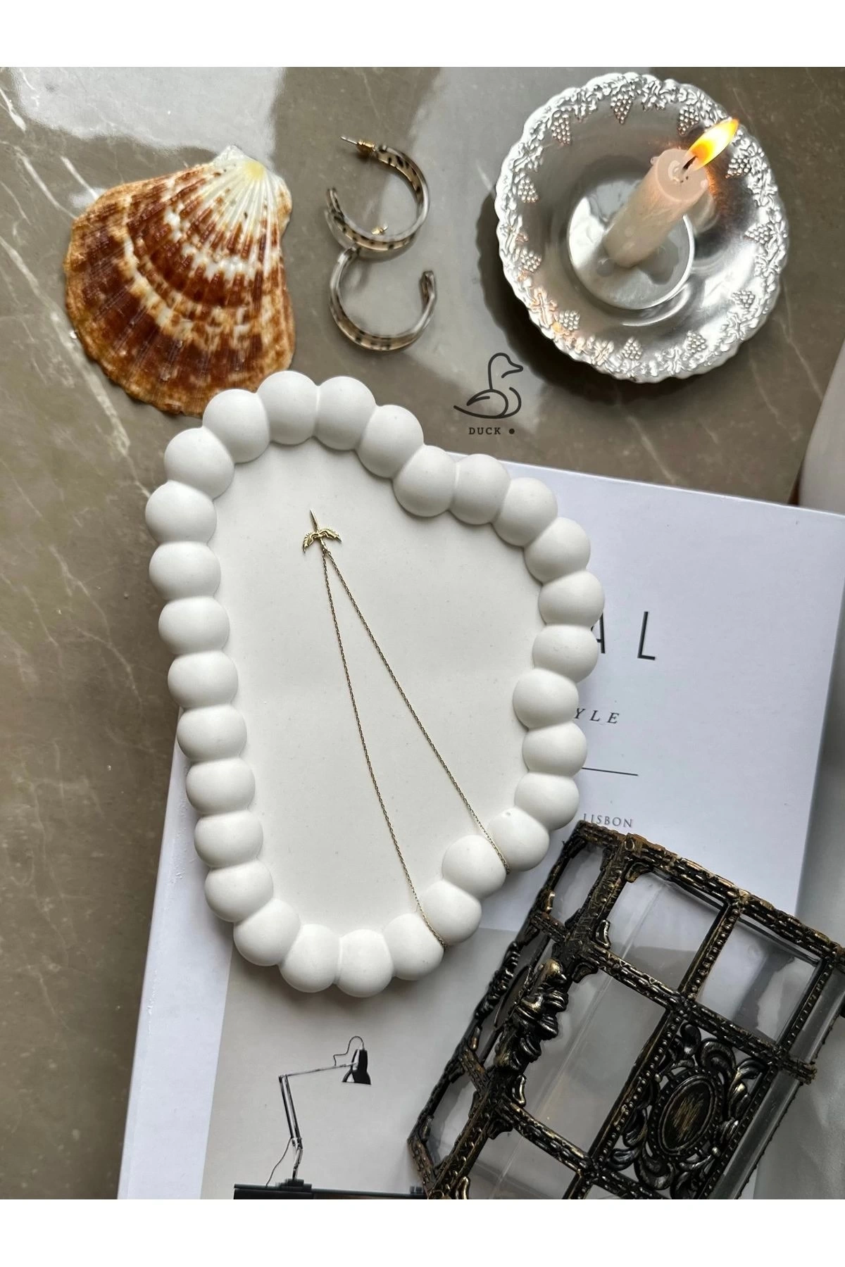 - Modern tasarımıyla dikkat çeken bu dekoratif tabak, evinizin her köşesine şıklık katar.; - Oval şekliyle mekanınızda zarif bir uyum sağlayarak, dekorasyonunuzu tamamlar.; - Beton materyali sayesinde dayanıklı yapısı ile uzun süreli kullanım sunar.; - Beyaz rengi ve web renk seçeneği ile aydınlık ve ferah bir atmosfer yaratır.; - 14 x 20 cm boyutlarındaki bu tabak, hem küçük hem de büyük objeler için ideal boyuttadır.; - Parça sayısı 1 olan bu ürün, minimalist estetiği sevenler için mükemmel bir seçenektir.