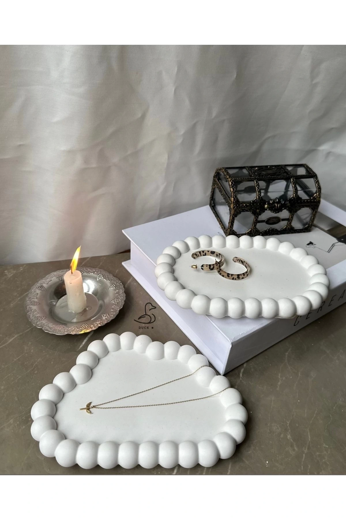- Oval formu ile modern dekorasyon anlayışınıza uyum sağlar.; - Beyaz rengi, mekanınızda ferahlatıcı bir atmosfer yaratır.; - Beton materyali sayesinde dayanıklılık ve uzun ömürlü kullanım sunar.; - 14 x 20 cm boyutlarındaki bu set, hem servis tabağı hem de dekoratif obje olarak idealdir.; - Parça sayısı 2 olup, çift kişilik sofralar veya küçük gruplar için uygundur.