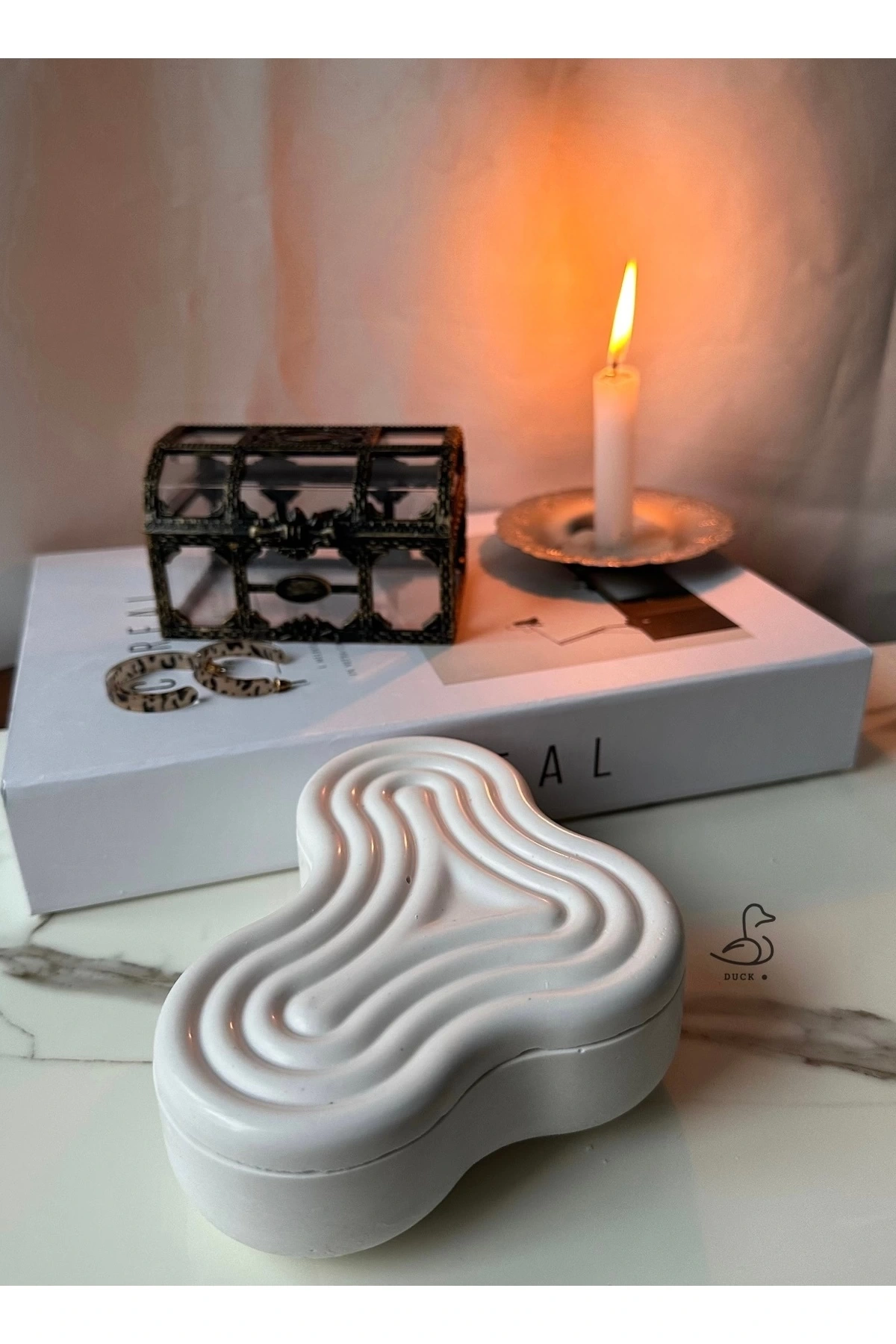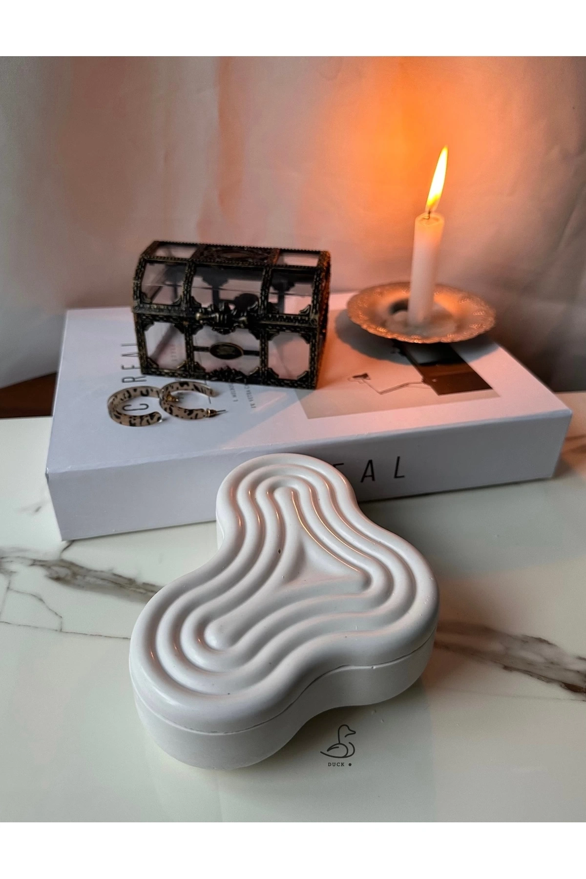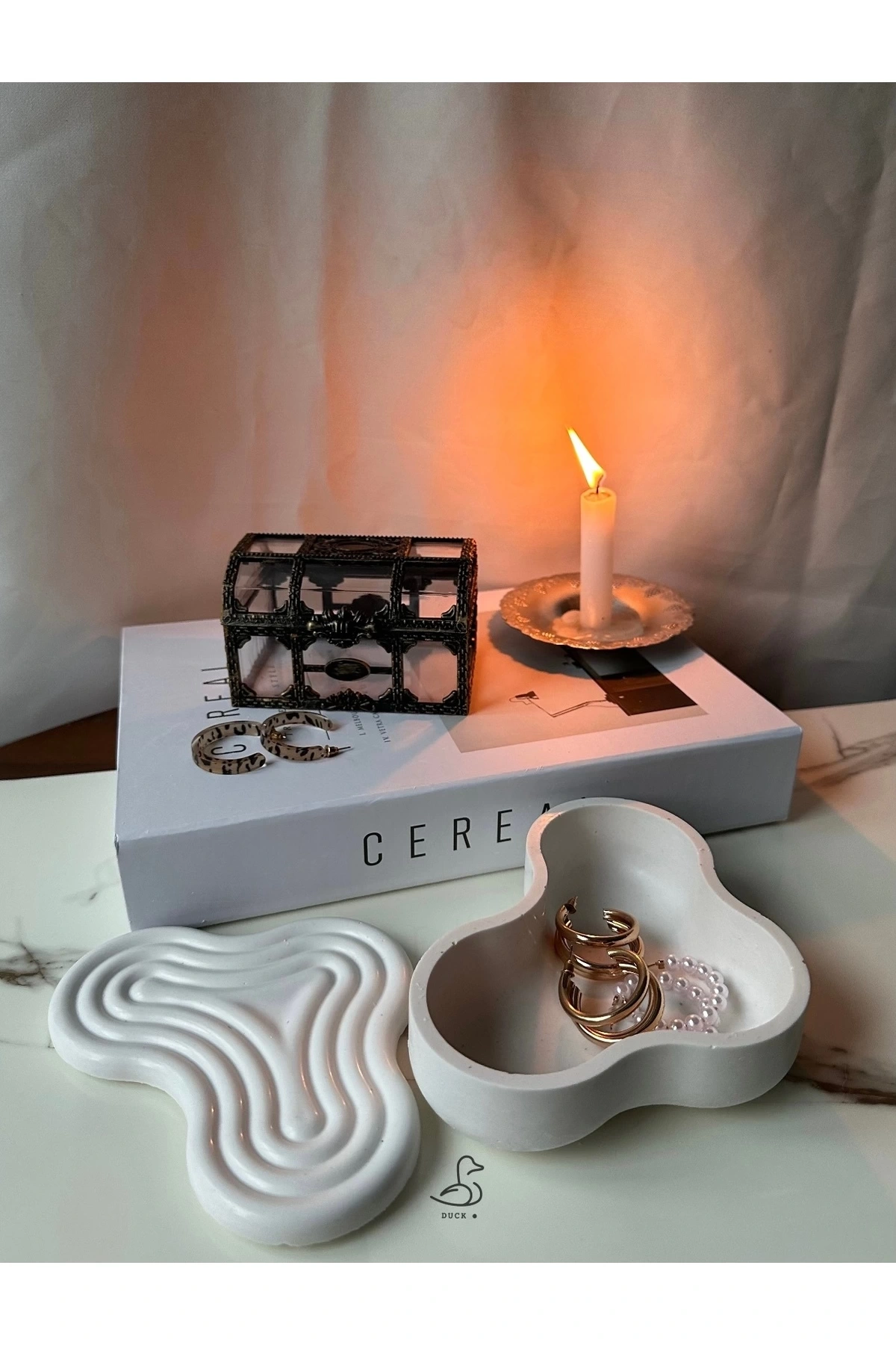 - Beton malzemesi sayesinde dayanıklı ve uzun ömürlü kullanım sunar.; - Asimetrik tasarımı ile modern dekorasyon anlayışınıza özgün bir dokunuş katar.; - Tek parça halinde gelen bu ürün, minimalist ve şık bir görünüm sağlar.; - Beyaz rengiyle her türlü mekâna kolayca uyum sağlar ve ferah bir atmosfer yaratır.; - 11 x 16 cm boyutlarındaki kompakt yapısı, dar alanlarda bile rahatça kullanılabilir.; - Modern tema ve stil sahibi tasarımıyla evinizin veya ofisinizin dekorasyonuna çağdaş bir hava katar.
