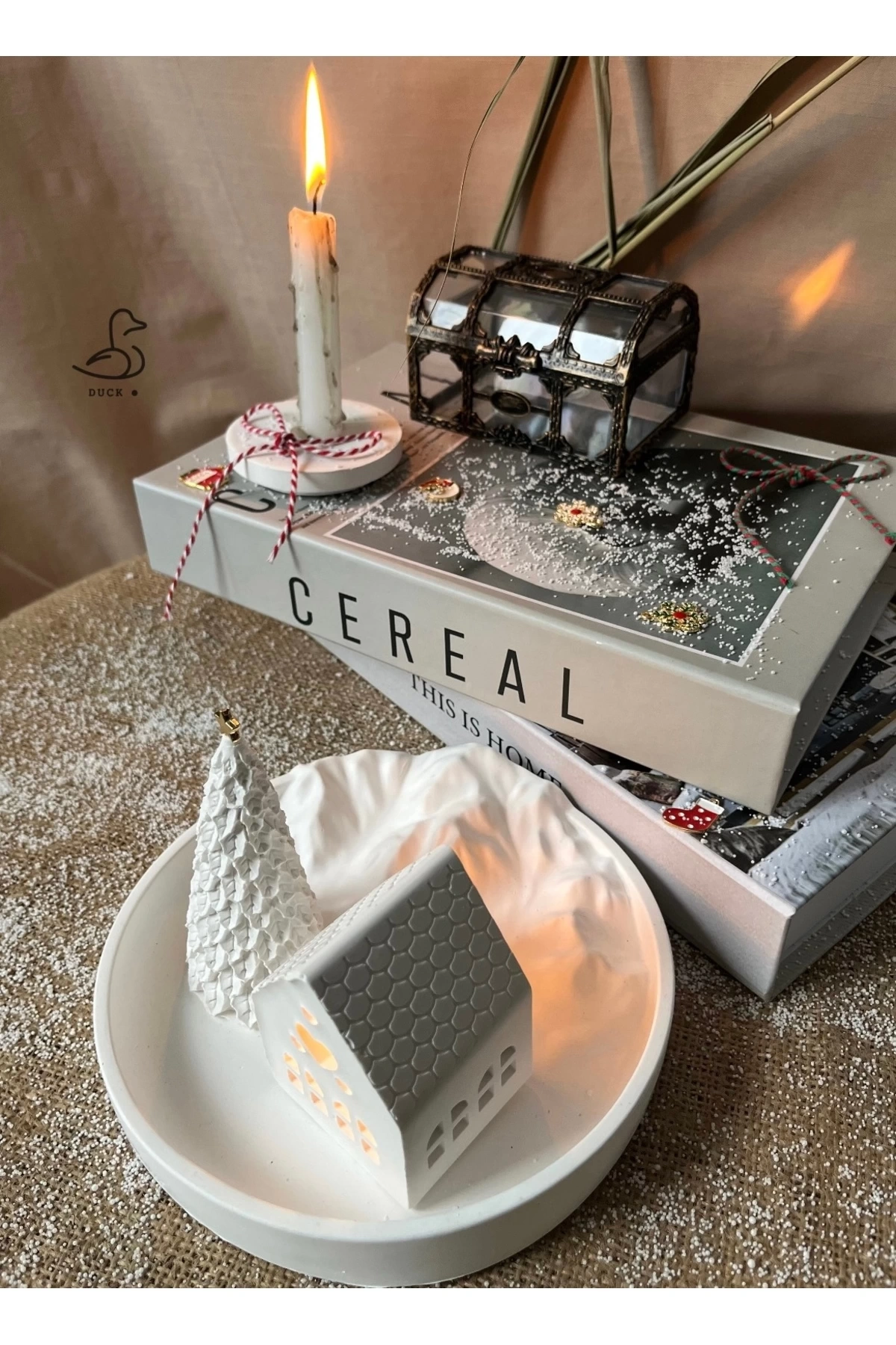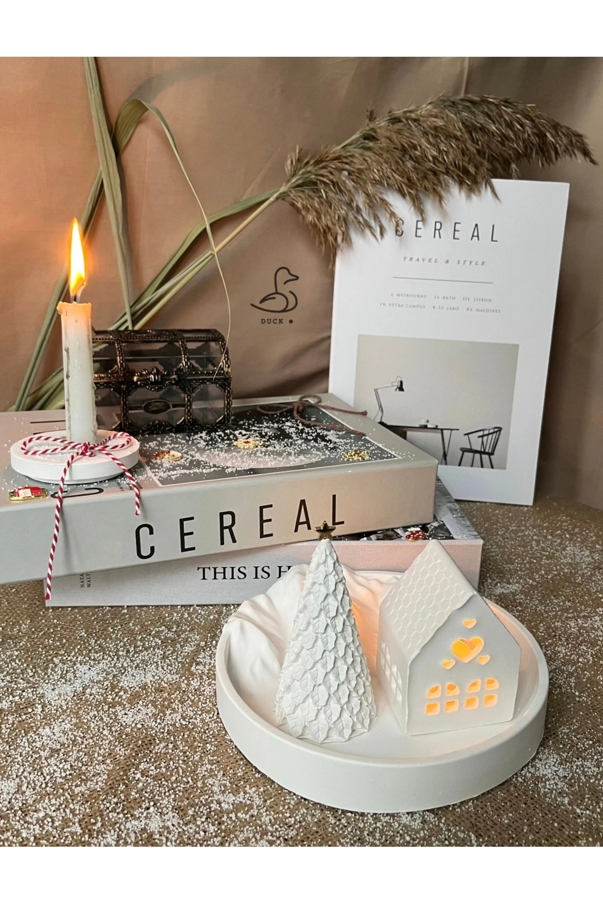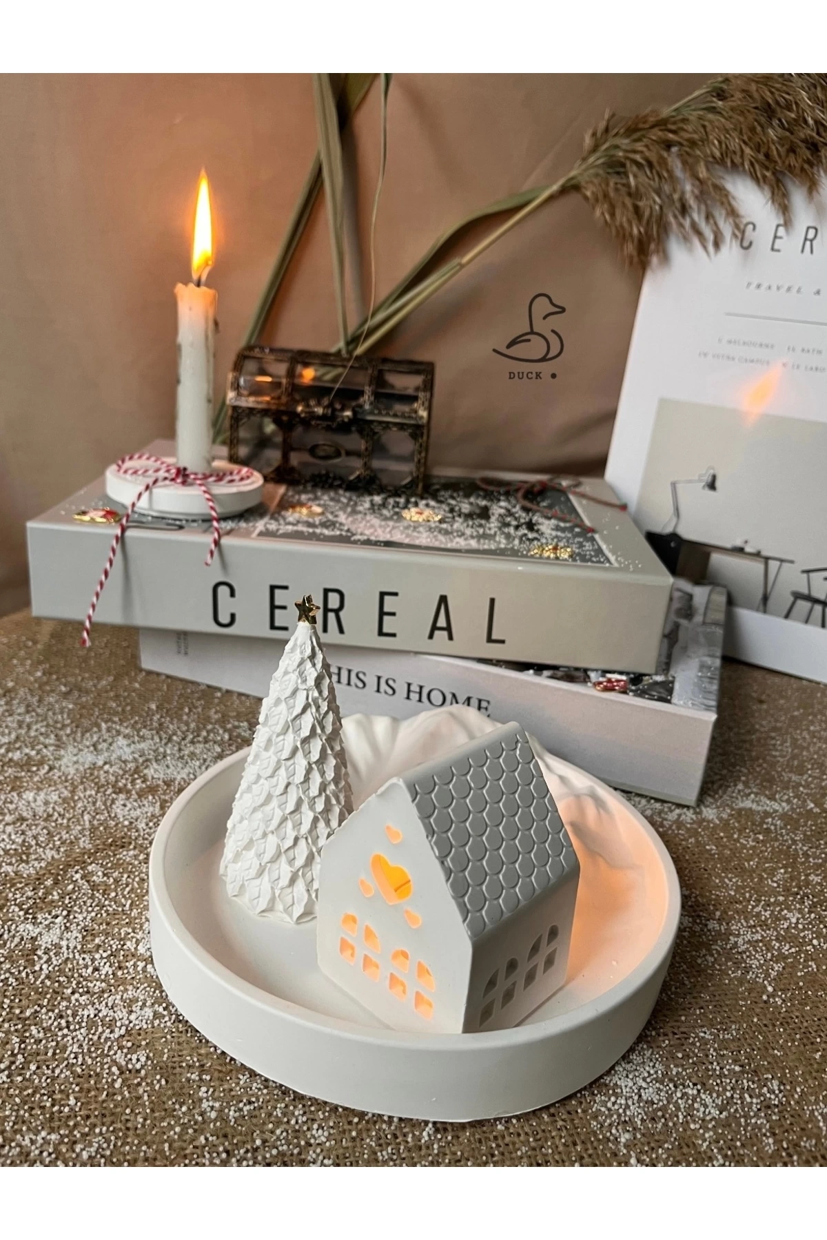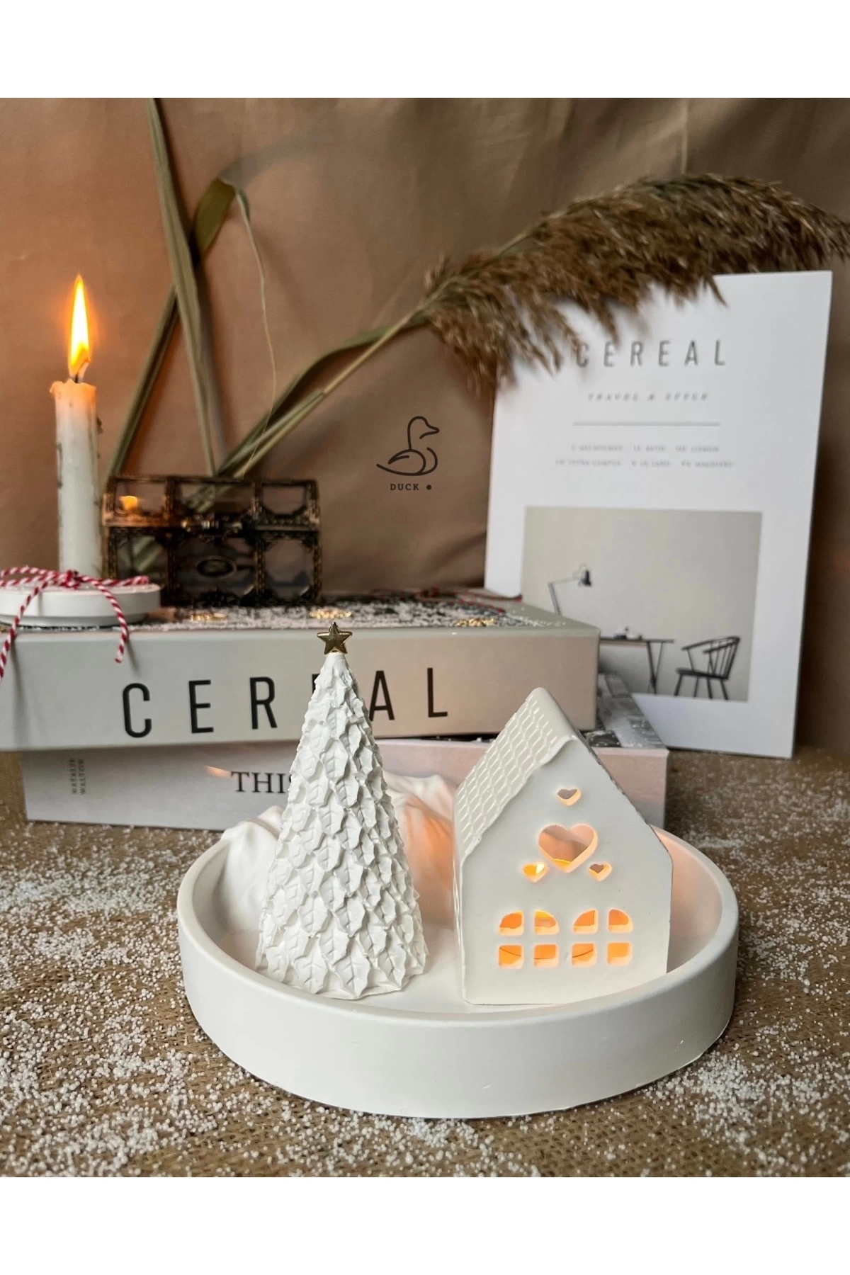 - Bohem tarzını evinize taşıyan dağ görünümlü tabak, çukur kalp şeklinde mumluk ile dekoratif bir atmosfer yaratır.; - Üç parçadan oluşan bu set, hem fonksiyonel hem de estetik bir görünüm sunar; taş tozu materyaliyle doğal dokunuşları evinizde hissettirir.; - %100 yerli üretim olan bu dekor seti, Türkiye'de üretilmiş olup yerel kaynakların kullanımına katkıda bulunur.; - 7x10 cm boyutlarındaki bu ürünler, küçük alanlardan büyük odalara kadar her mekâna uyum sağlayacak şekilde tasarlanmıştır.; - Beyaz renkteki web color özelliği sayesinde kolayca diğer mobilya ve aksesuarlarınızla uyumlu hale getirebilirsiniz.