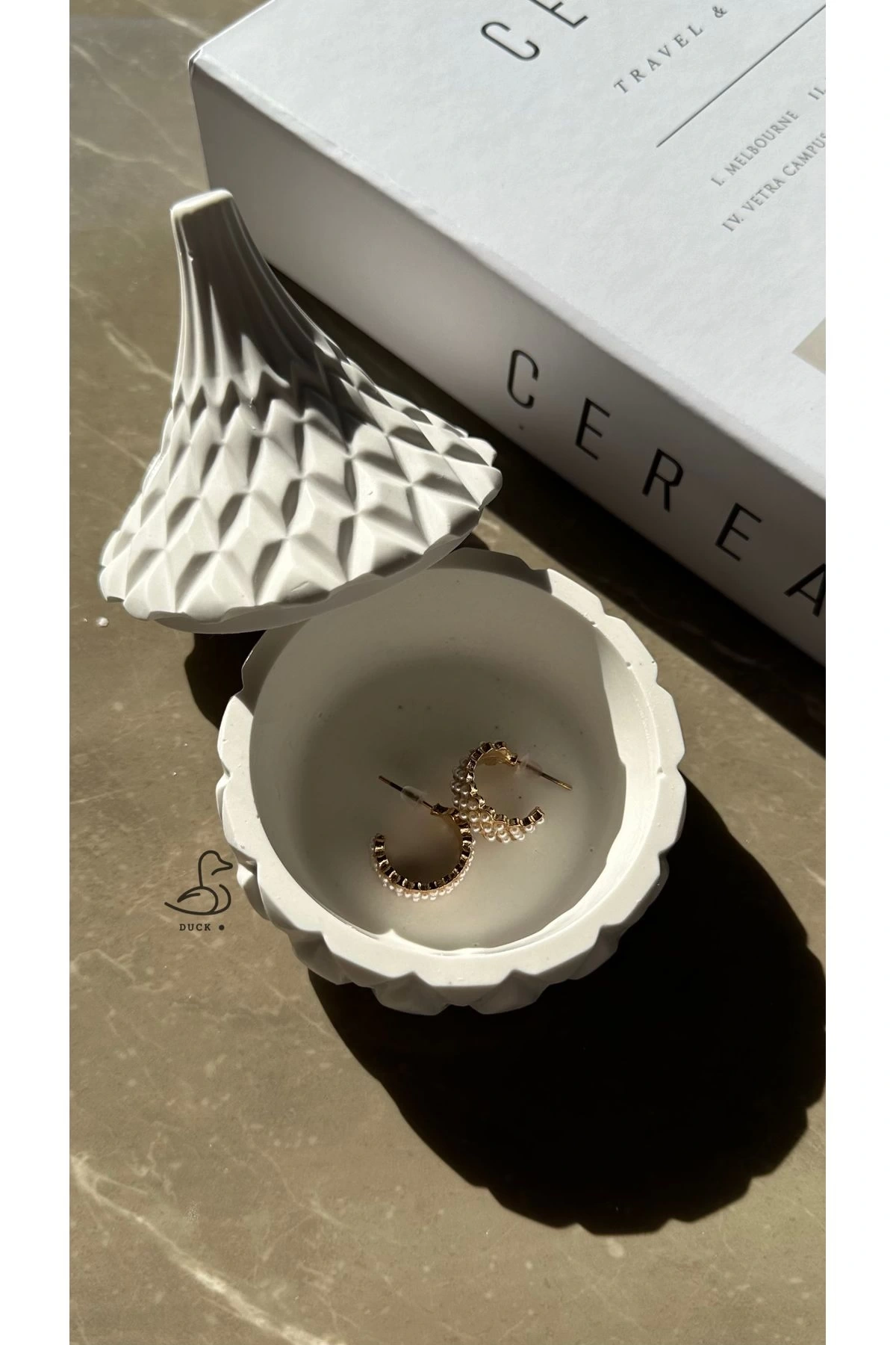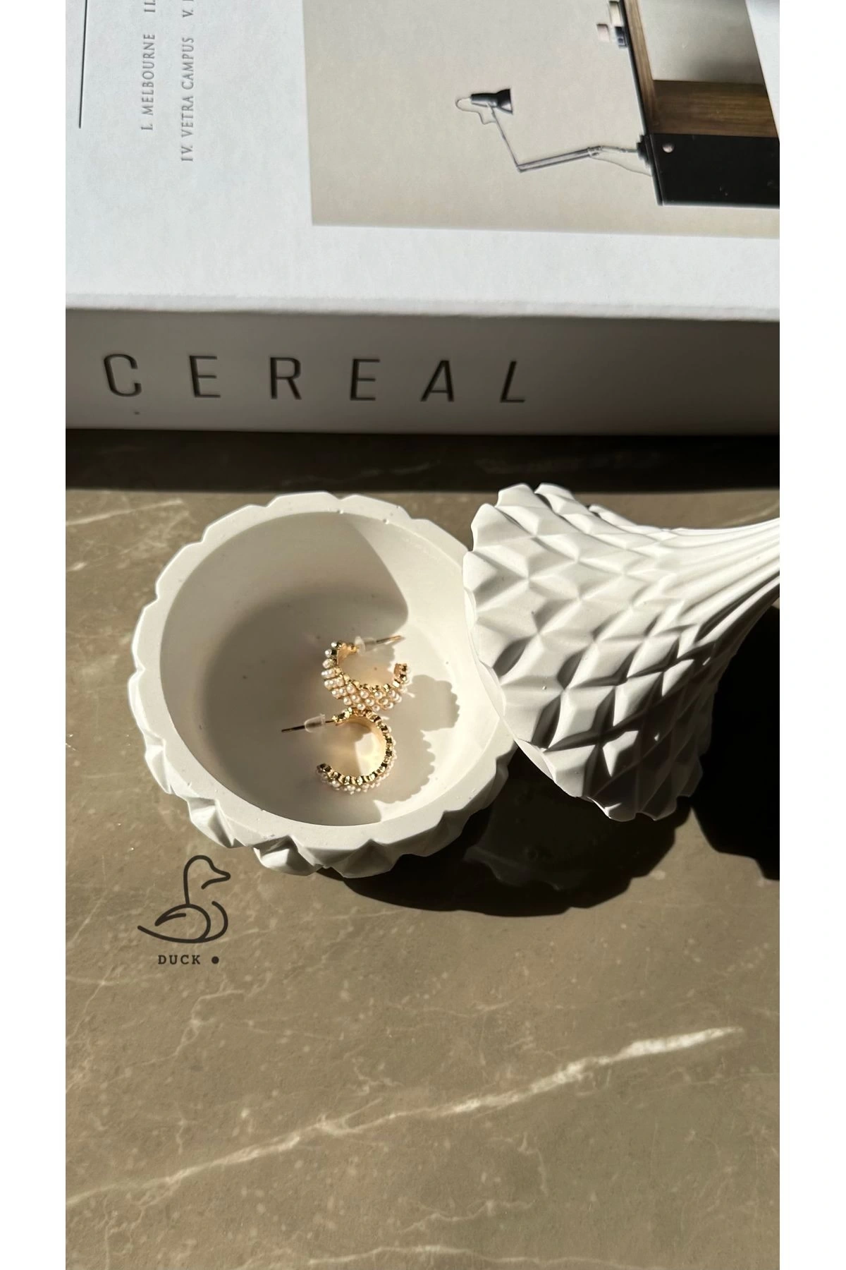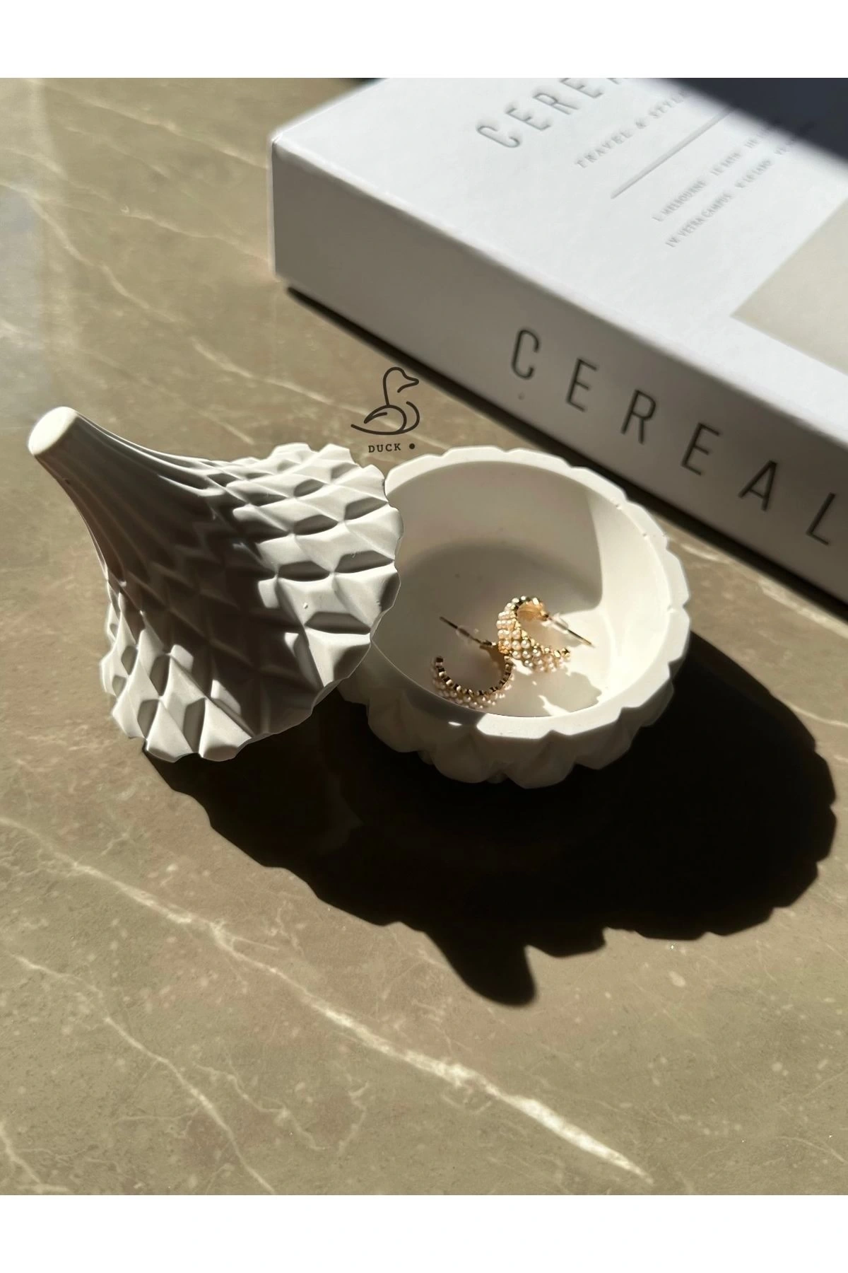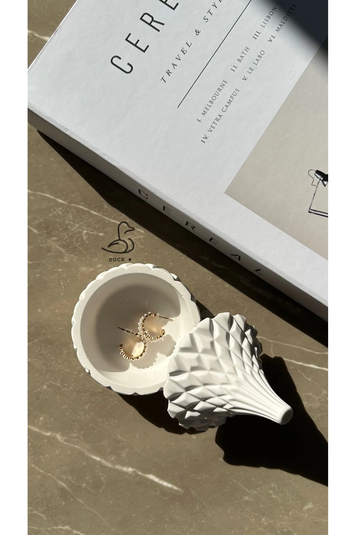 - Asimetrik tasarımıyla modern dekorasyonlara şık bir dokunuş ekler.; - Beton malzemesi sayesinde dayanıklı ve uzun ömürlü kullanım sunar.; - Beyaz rengiyle mekanınıza ferahlık ve temizlik hissi verir.; - 7 x 10 cm boyutlarındaki kompakt yapısı, küçük alanlarda bile kolayca yer bulmasını sağlar.; - Modern tema ve stil anlayışıyla evinizin veya ofisinizin atmosferini yeniler.