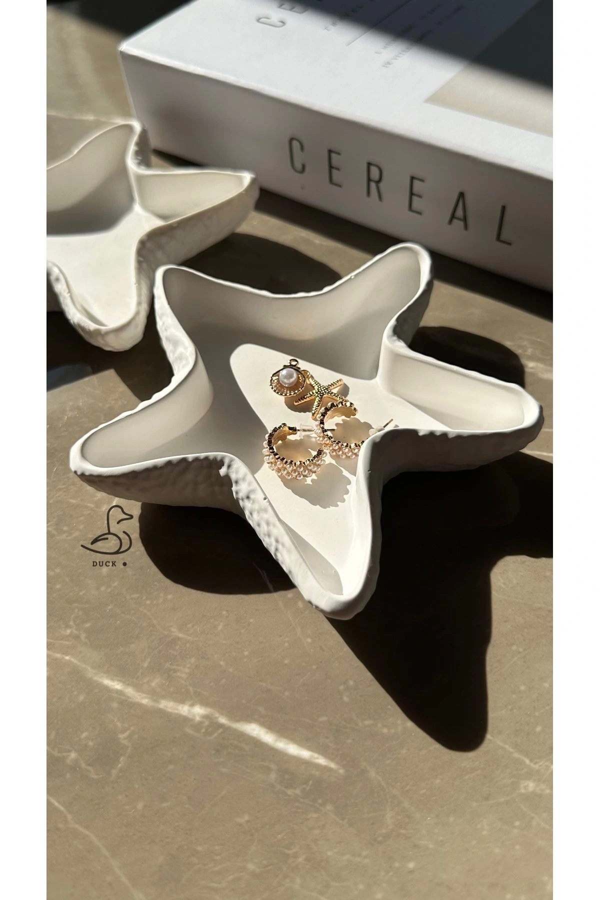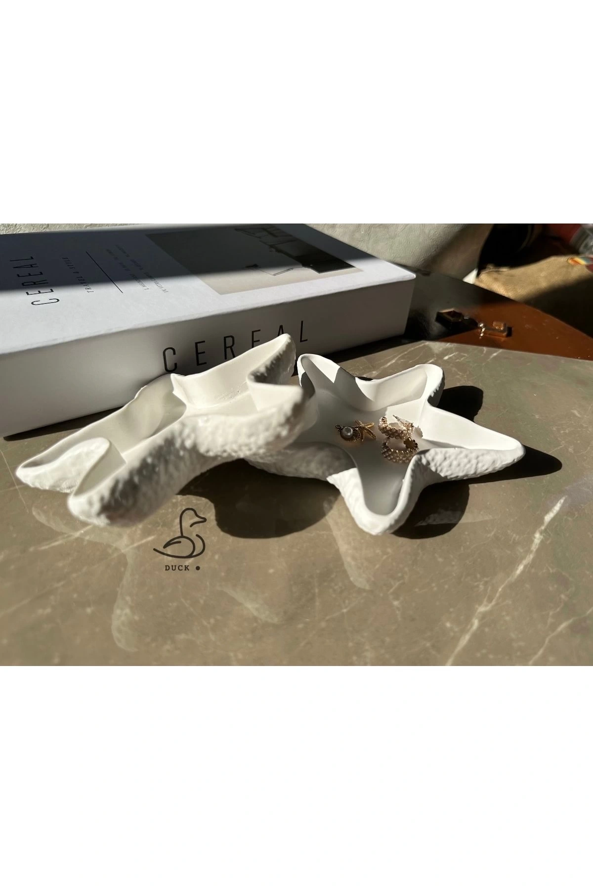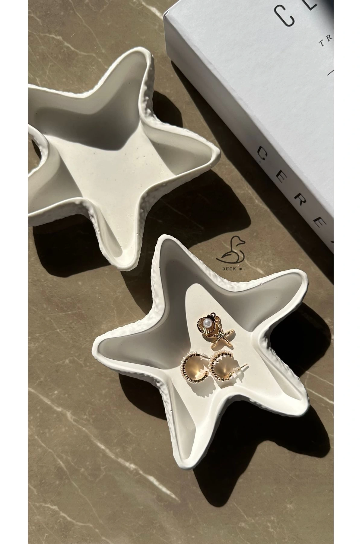 - Asimetrik tasarımı ile modern dekorasyon anlayışınızı yansıtan deniz yıldızı görünümlü takı tabak/mumluk seti.; - Beton malzemesi sayesinde dayanıklılık ve uzun ömürlü kullanım sunar.; - Beyaz rengiyle her türlü oda dekorasyonuna kolayca uyum sağlar.; - 8 x 8 cm boyutlarındaki bu set, hem takılarınızı sergilemek hem de mumlarınız için ideal bir alan sunar.; - Modern tema ve stil ile evinizde şık bir atmosfer yaratır.