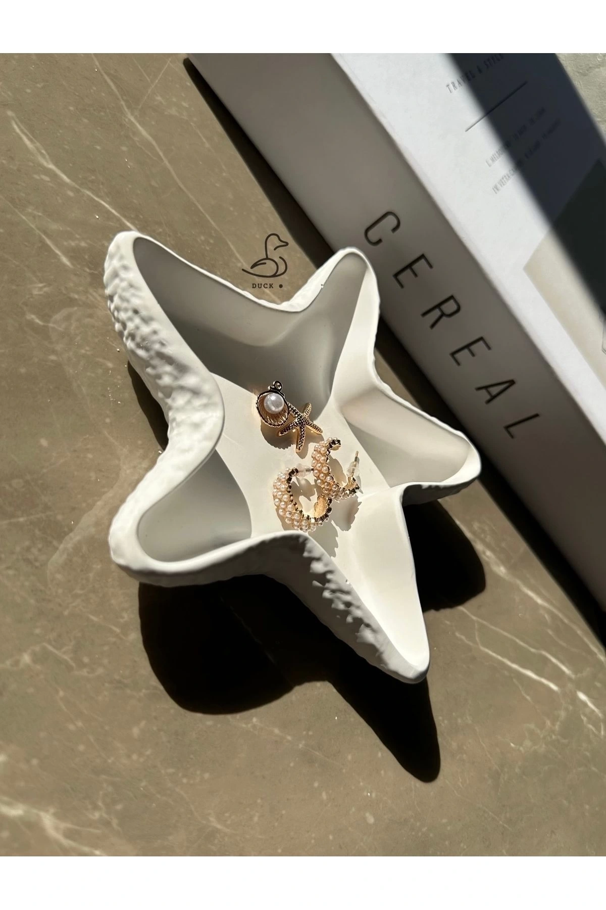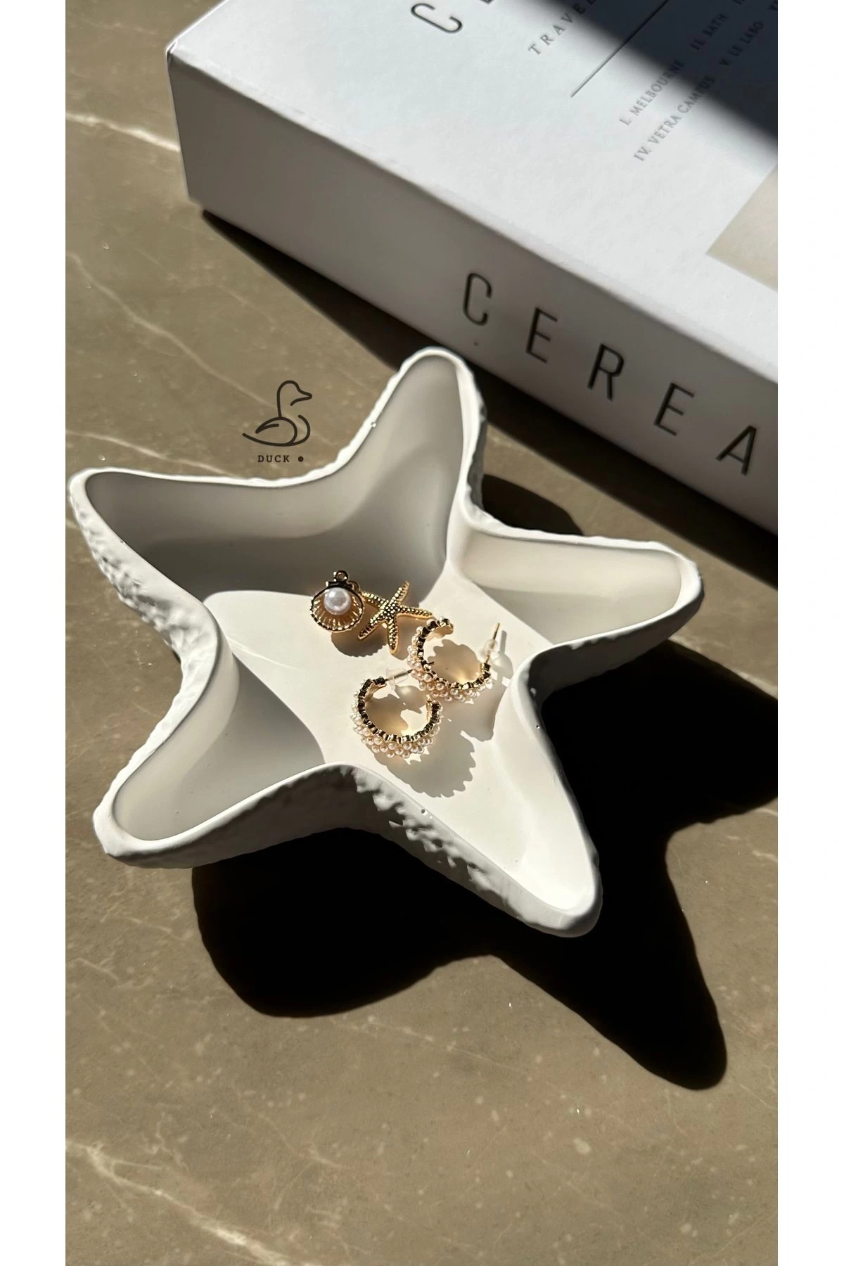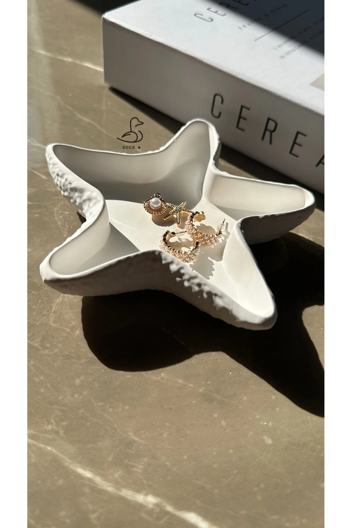 - Asimetrik tasarımı ile modern dekorasyon anlayışınızı yansıtan deniz yıldızı görünümlü tabak.; - Beton malzemesi sayesinde dayanıklı ve uzun ömürlü kullanım sunar.; - Beyaz renk seçeneği ile mekanınıza ferahlık ve aydınlık bir atmosfer katar.; - 12 x 14 cm boyutlarındaki bu tabak, hem küçük hem de orta boy sunumlara uygunluk sağlar.; - Modern tema ve stil anlayışıyla evinizin veya ofisinizin estetiğini yükseltir.