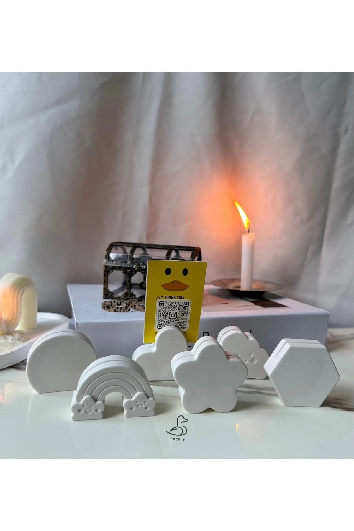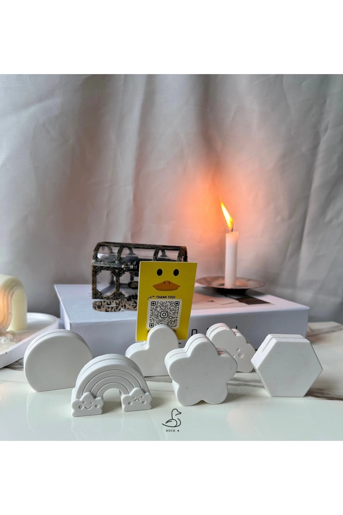 - Modern tasarımıyla dikkat çeken kartvizit/fotoğraf tutucu, ofis ve ev dekorasyonunuza şık bir dokunuş ekler.; - Dayanıklı beton malzemesi sayesinde uzun ömürlü kullanım sunar ve sık kullanımlarda bile formunu korur.; - 6 adetlik set - Beyaz rengiyle her türlü dekorasyon stiline kolayca uyum sağlar ve mekanınıza ferahlık katar.; - 5 x 6 cm boyutlarındaki kompakt tasarımı, az yer kaplayarak çalışma alanınızda veya masanızda yerden tasarruf etmenizi sağlar.