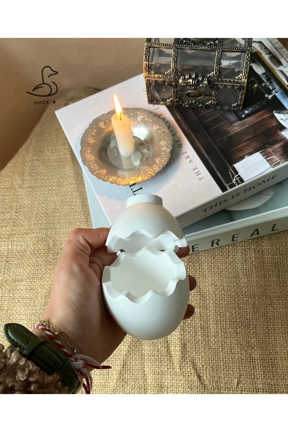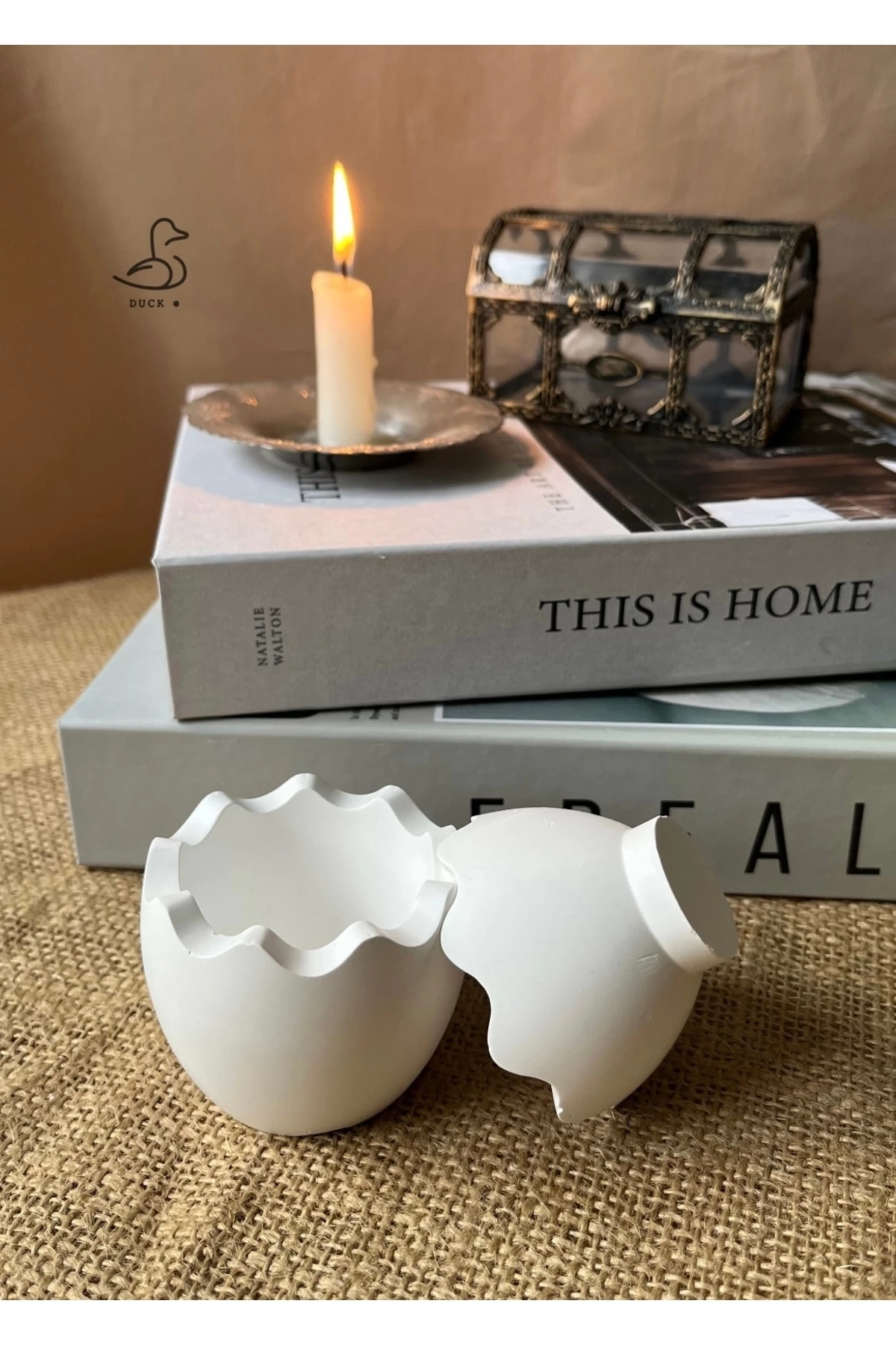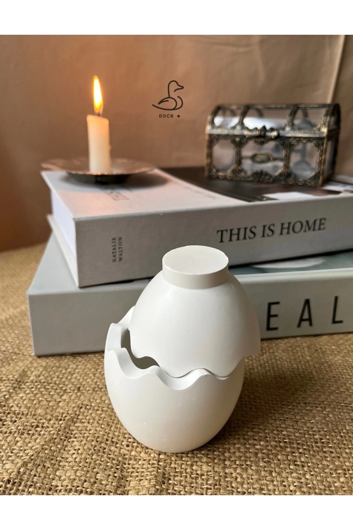 - Modern tasarımıyla dikkat çeken kırık yumurta görünümündeki bu dekoratif kutu, mekanınıza şıklık katıyor.; - Beton materyali sayesinde dayanıklı ve uzun ömürlü kullanım sunuyor.; - Tek parça halinde gelen bu ürün, kolay montaj avantajı sağlıyor.; - Asimetrik şekliyle görsel bir zenginlik yaratırken, 7x6 cm boyutlarıyla ideal saklama alanına sahip.; - Taş tozu temalı modern stil, evinizde veya ofisinizde estetik bir dokunuş oluşturuyor.