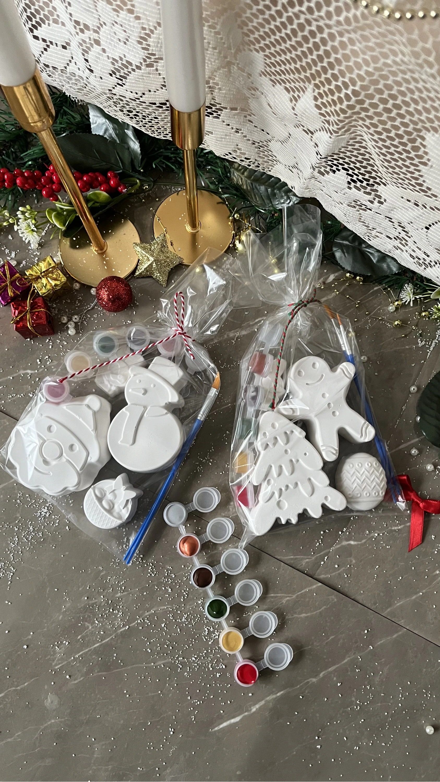 • 4 Adet Taş Tozu Figür: Kardan adam, çam ağacı, yılbaşı kurabiyesi, süs objeleri gibi el yapımı taş tozu figürler set içinde yer alır. Her figür dayanıklı, pürüzsüz ve boyamaya hazır olarak gelir.