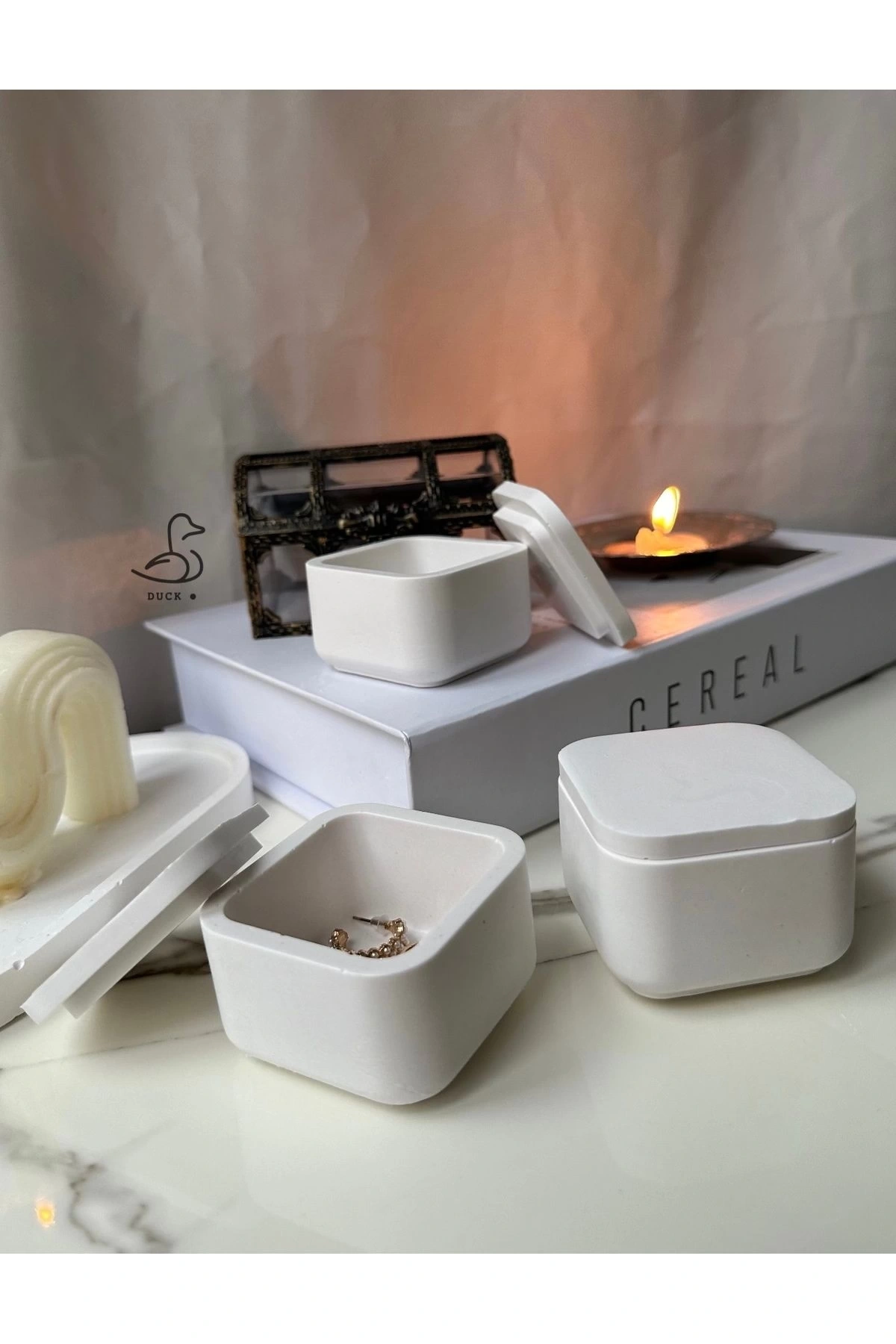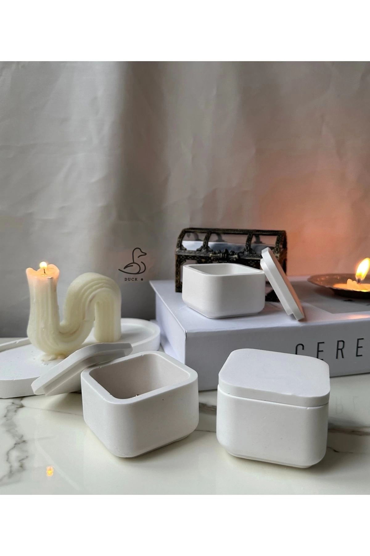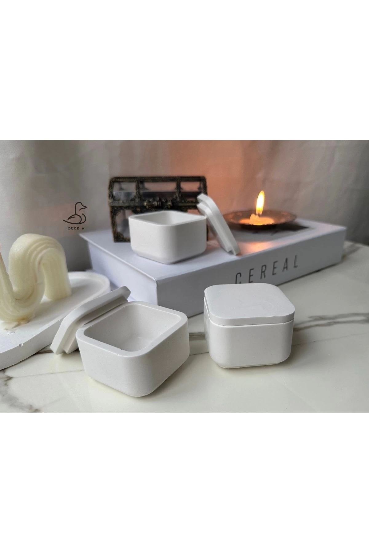 - Beton malzemesi sayesinde dayanıklı ve uzun ömürlü kullanım sunar.; - Kare şekliyle modern ve şık bir görünüm kazandırır.; - Üç parçadan oluşan set, mutfakta veya sofra düzeninde estetik bir uyum sağlar.; - Beyaz rengi ile her türlü dekorasyona kolayca uyum sağlar ve ferah bir atmosfer yaratır.; - 5 x 7 cm boyutlarındaki tabaklar, küçük porsiyonlar için idealdir ve servis yapmayı kolaylaştırır.; - Modern tema/stiliyle çağdaş mutfakların vazgeçilmez aksesuarlarından biri haline gelir.