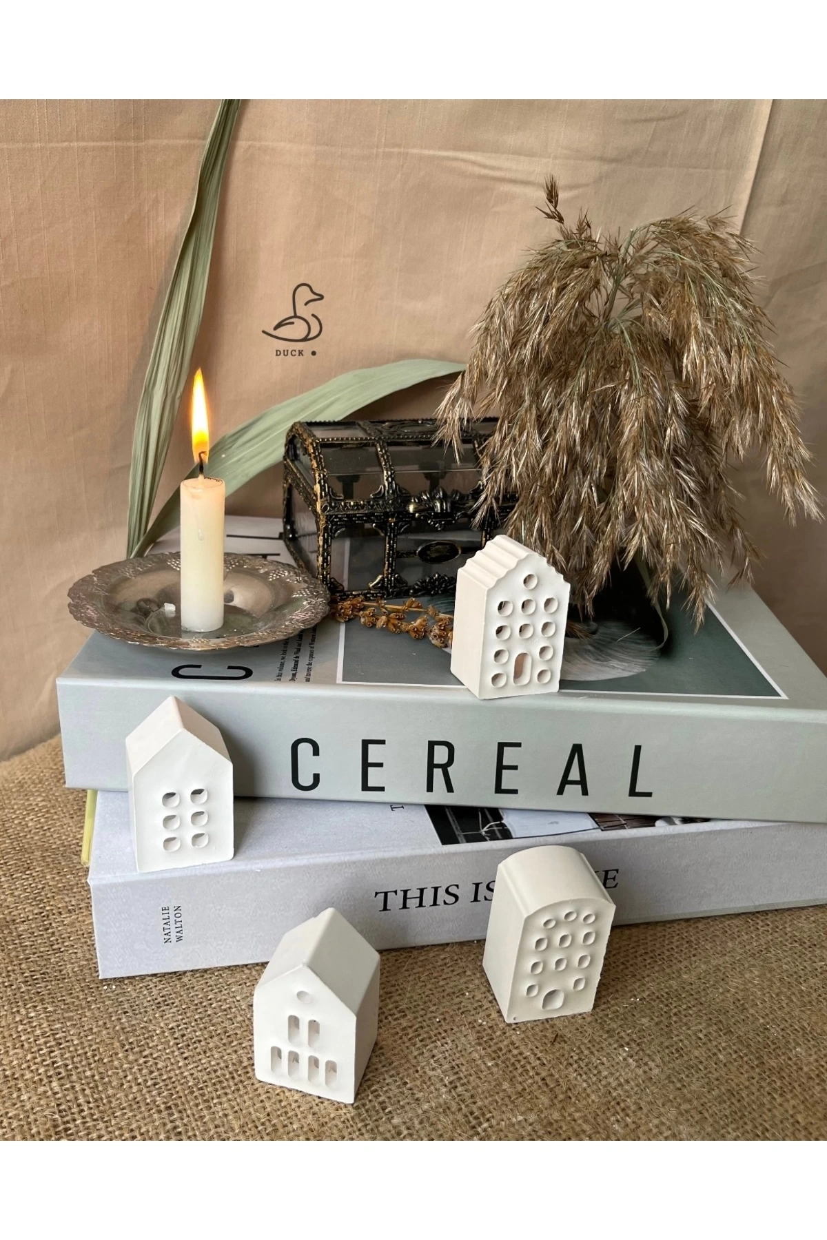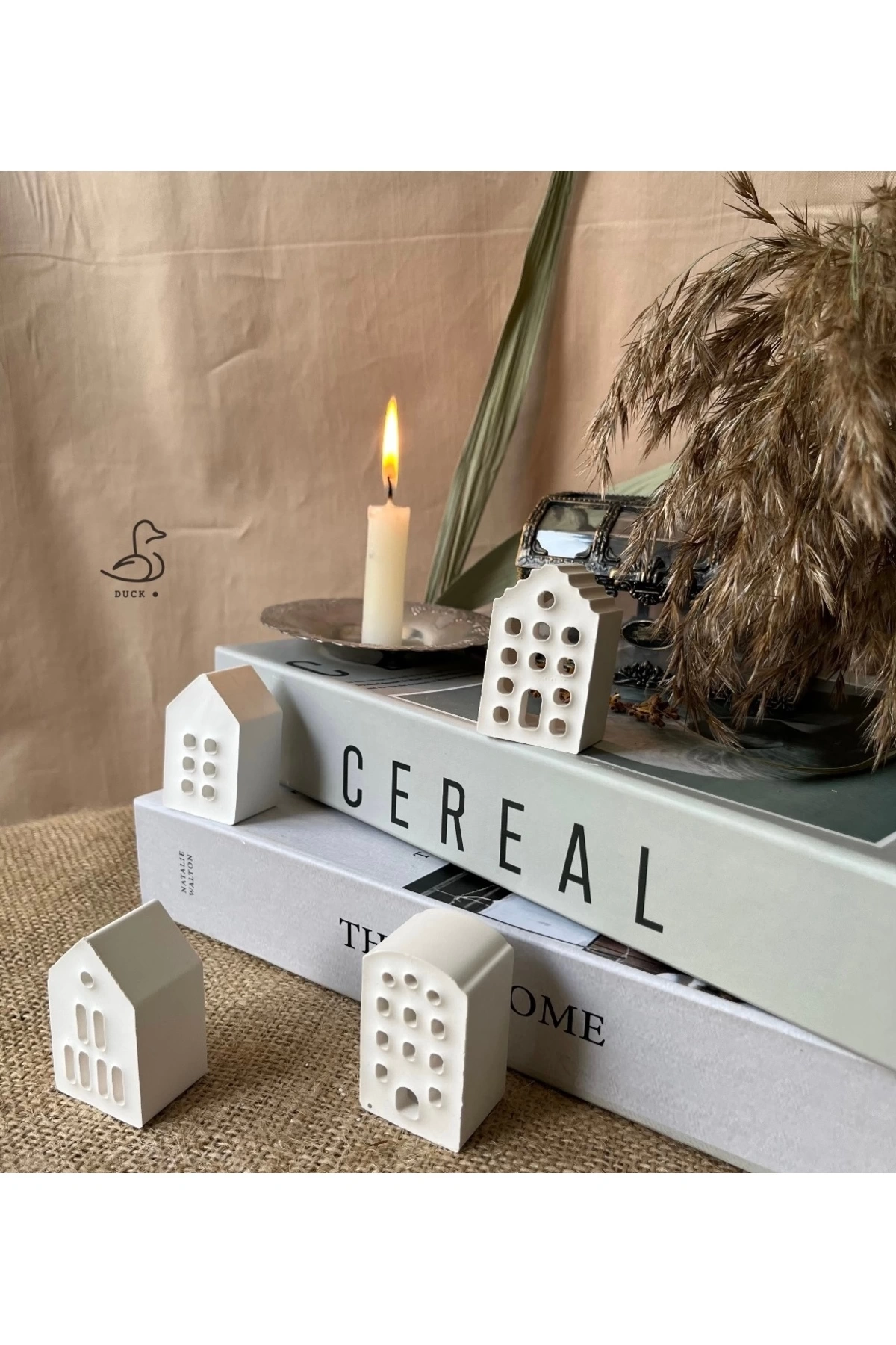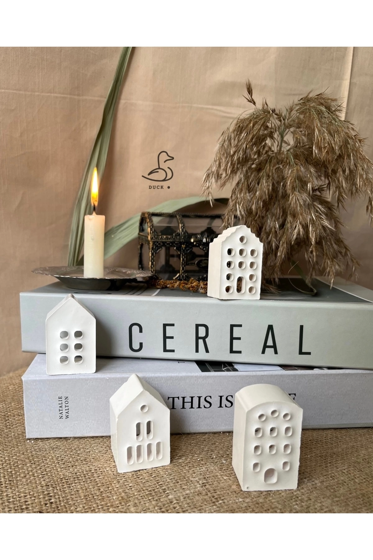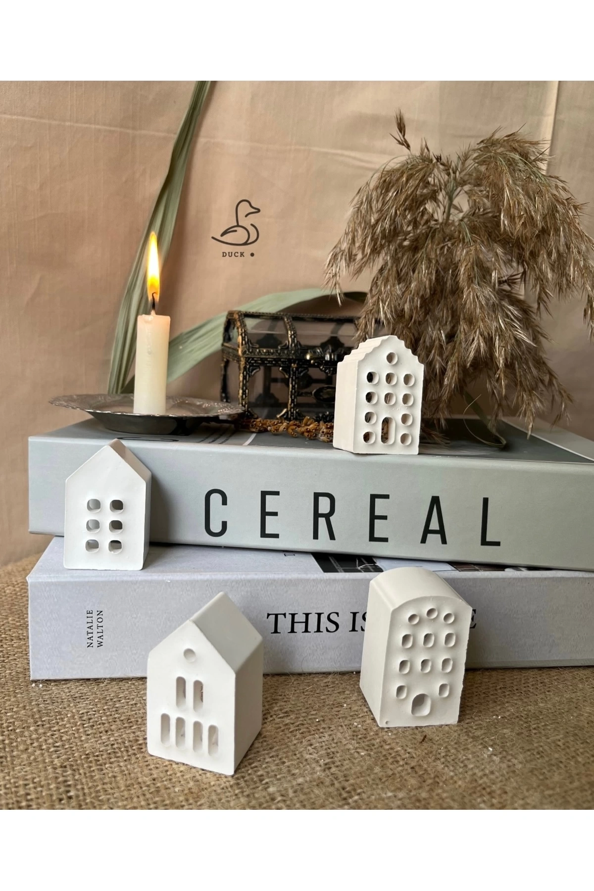 - Modern tasarımıyla dikkat çeken bu 4'lü set, küçük ev dekorasyonlarınıza şıklık katar.; - Taş tozu materyali sayesinde doğal bir dokunuş sunar ve her türlü iç mekan tasarımına uyum sağlar.; - Türkiye'de üretilmiş olup yerel kaynaklı malzemelerle çevre dostu bir seçenek oluşturur.; - 5 cm boyutlarındaki kompakt yapısı ile kolayca sergilenebilir veya saklanabilir; alan tasarrufu sağlar.; - Beyaz renk seçeneğiyle aydınlık ve ferah bir atmosfer yaratır; farklı renk paletleriyle mükemmel uyum gösterir.