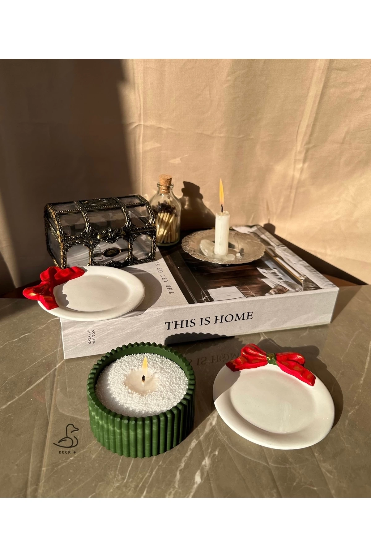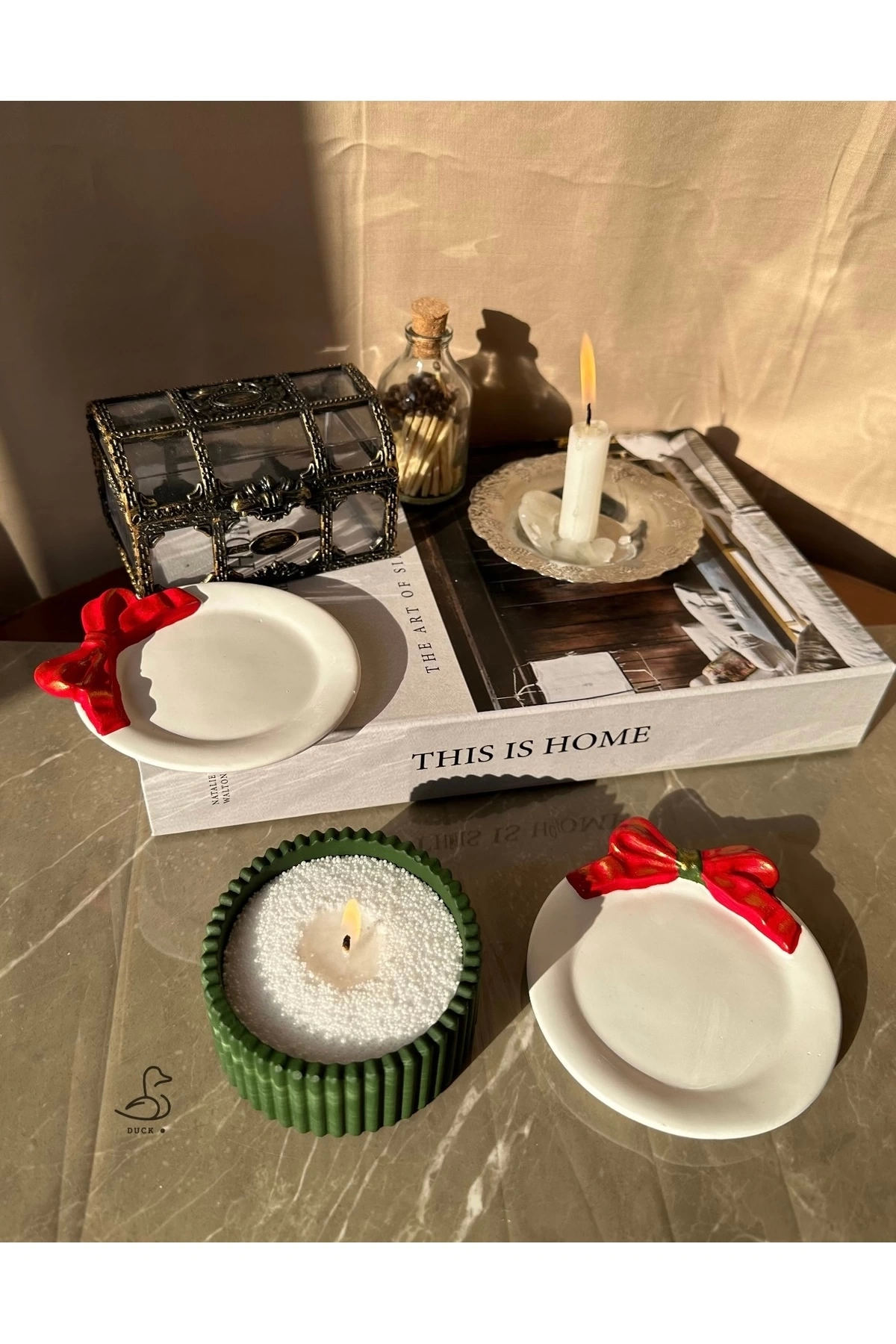 - Yılbaşı ruhunu evinize taşıyacak, taş tozundan üretilmiş dekoratif tabaklar, masanızda şık bir dokunuş sağlar.; - Üç parçadan oluşan set, yılbaşı temalı kurdelelerle süslenmiş ve inci tozu detaylarıyla zenginleştirilmiştir.; - Canlı renk seçenekleriyle her türlü dekorasyona uyum sağlayacak şekilde tasarlanmıştır.; - 6 x 6 cm boyutlarındaki bu tabaklar, hem küçük hem de orta boy sofra düzenlerinde rahatlıkla kullanılabilir.; - Türkiye'de üretilen bu ürünler, yerel zanaatkarların el işçiliğiyle kalite ve estetiği bir arada sunar.